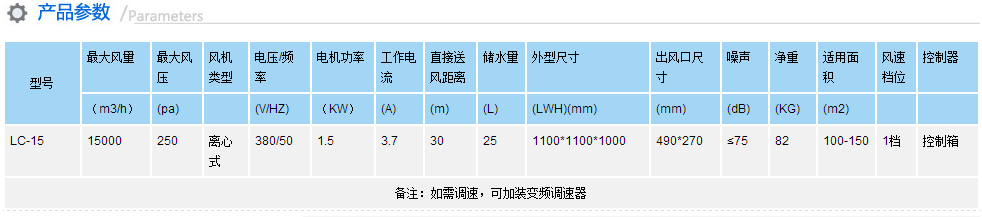 LC-15厨房固定式冷气机(环保空调)产品参数: