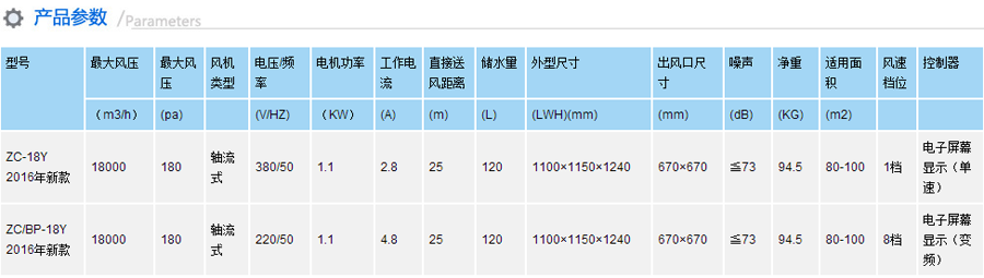 型号:ZS-18Y1-2类别:移动式蒸发冷气机品牌:九洲普惠(科叶)