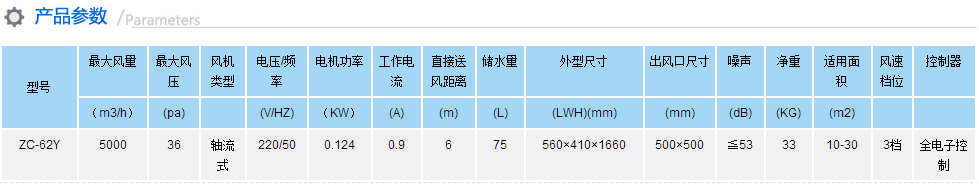 型号:ZC-62Y类别:移动式蒸发冷气机品牌:九洲普惠(科叶)